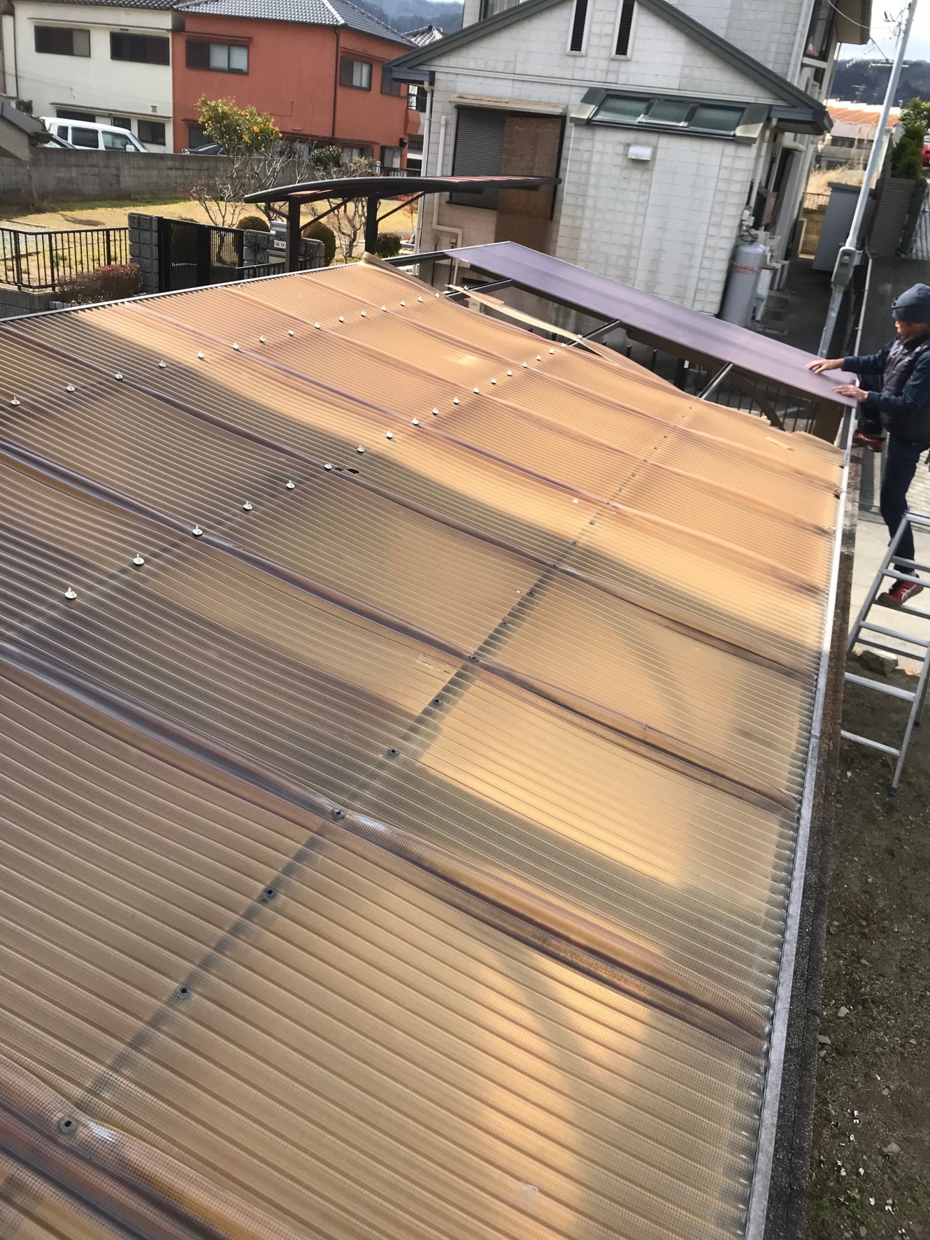 カーポートの屋根部、波板の張替えでした。